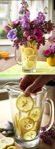 Take a clear glass pitcher and place inside the pitcher a smaller cylander pitcher which can be found at most Dollar Stores.