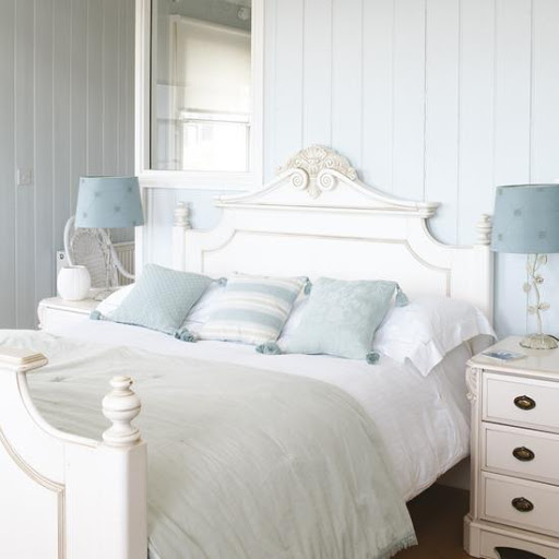 Cottage Inspiration ~ My style of bedroom! More white with accenting pastels. And this is where I’m going…after 14 hours of driving back from Florida I’m a bit tired! π
