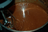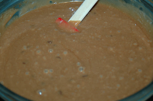 In a small saucepan combine butter, cocoa and water. Bring to a boil, then add to flour mixture. Beat well.