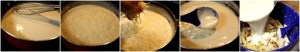 In a separate large skillet melt the butter; add the onion and garlic and cook for 1 – 2 minutes. Add the flour and mix using a wire whisk. Mix until bubbly and it starts to take on a bit of color.